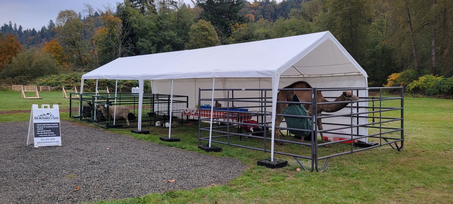 One of our camels will come and make an appearance for larger parties, company/church events, fairs, and more. We will set up paneling for him and provide treats to give